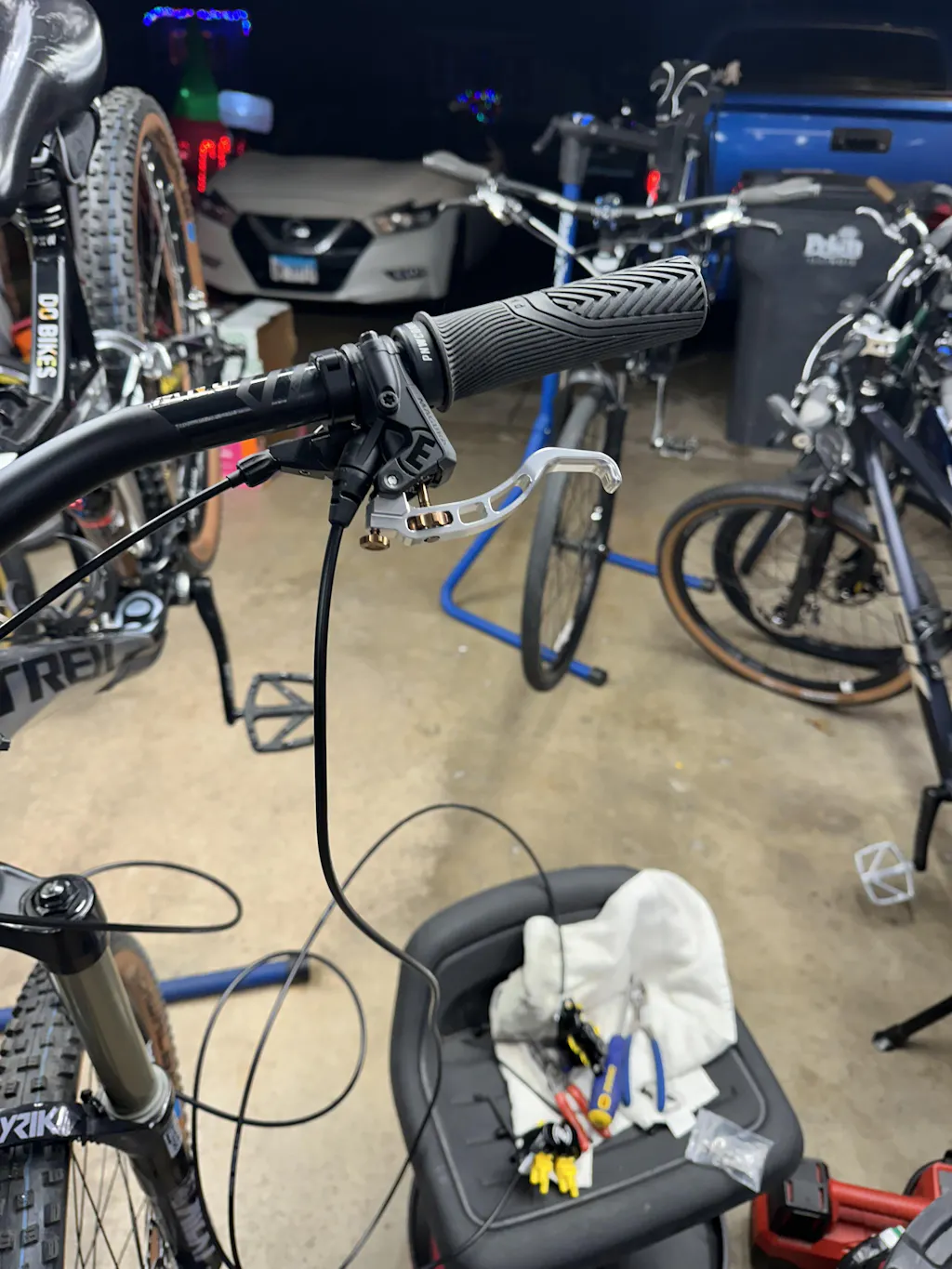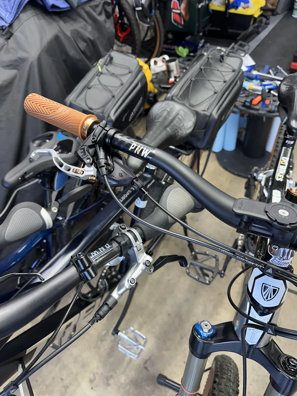 Feet, hands, and fingers. We only contact our bikes in a few areas when descending. Our levers feature an aggressive curve that feels like it is made for your finger and texture to keep that finger onboard.